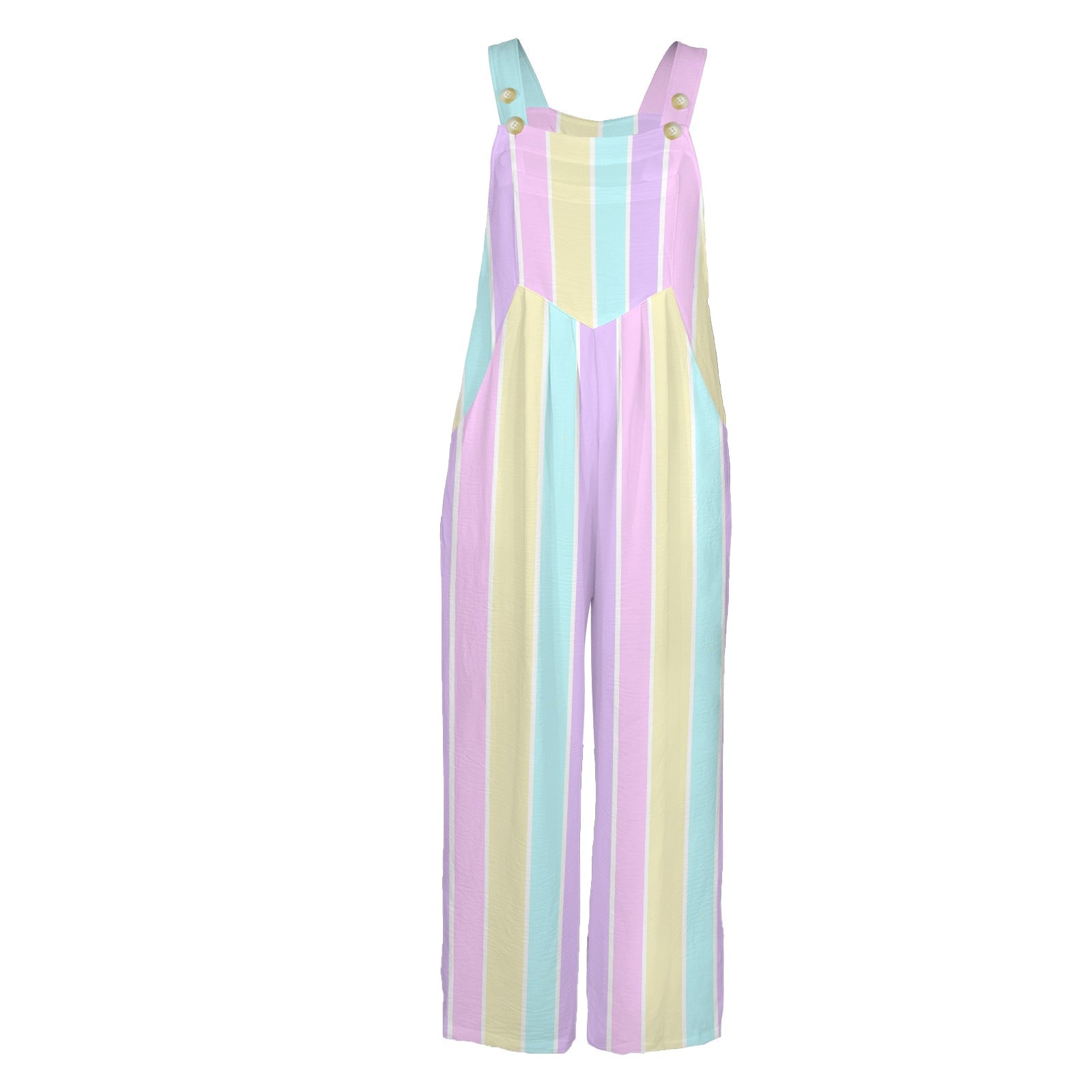 Pastel Stripes Adjustable Strap Wide Leg Jumpsuit Overalls With Pockets