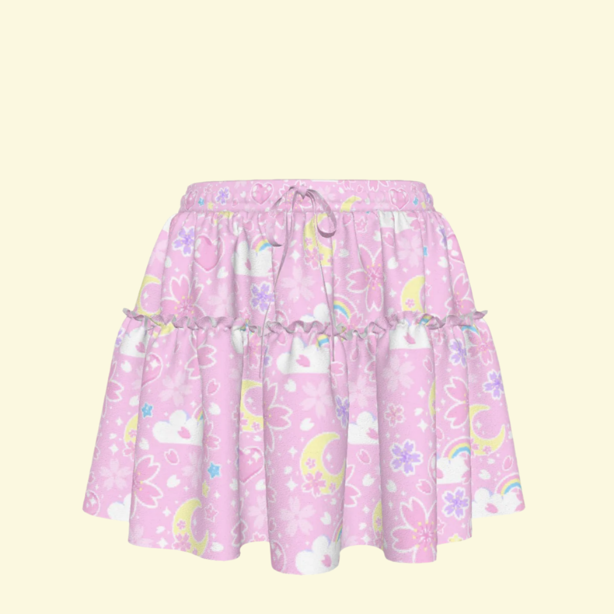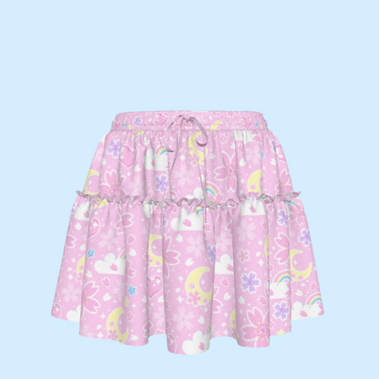 This charming ruffled mini skirt is perfect for daily wear. Its delicate ruffle accents bring a subtle elegance, making it both fashionable and comfortable for school, errands, amusement parks, or date nights. Featuring a front drawstring waist tie, it allows for easy adjustment to ensure a perfect fit throughout the day.