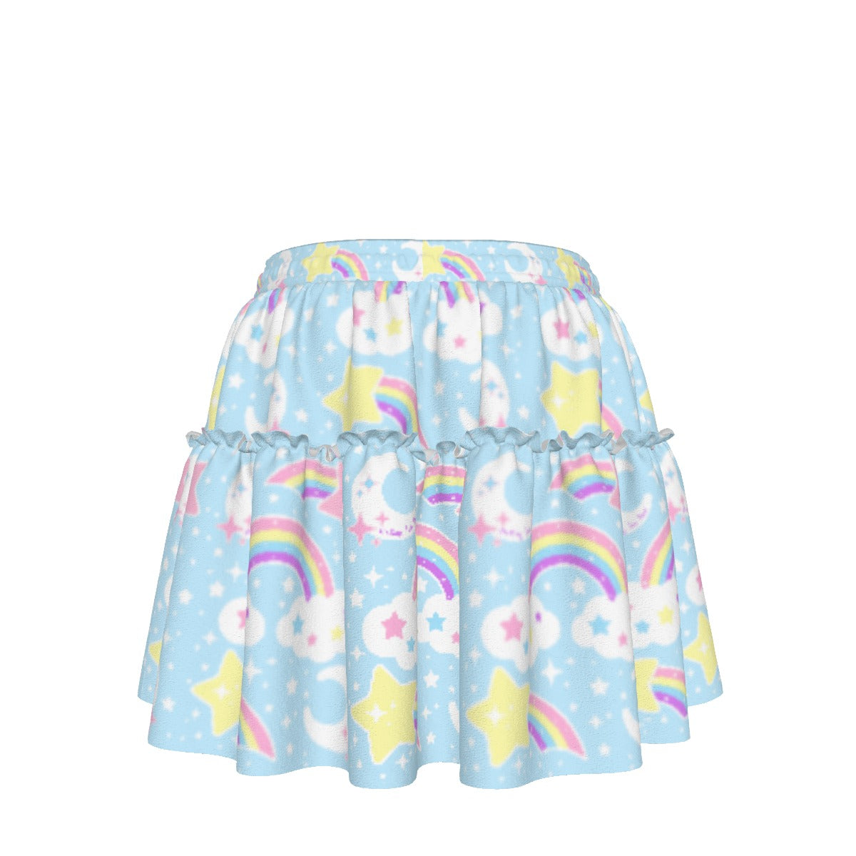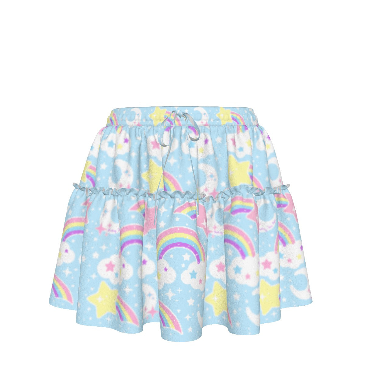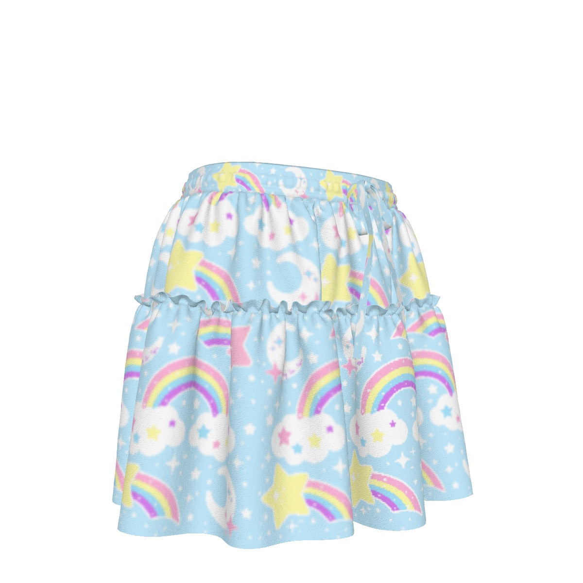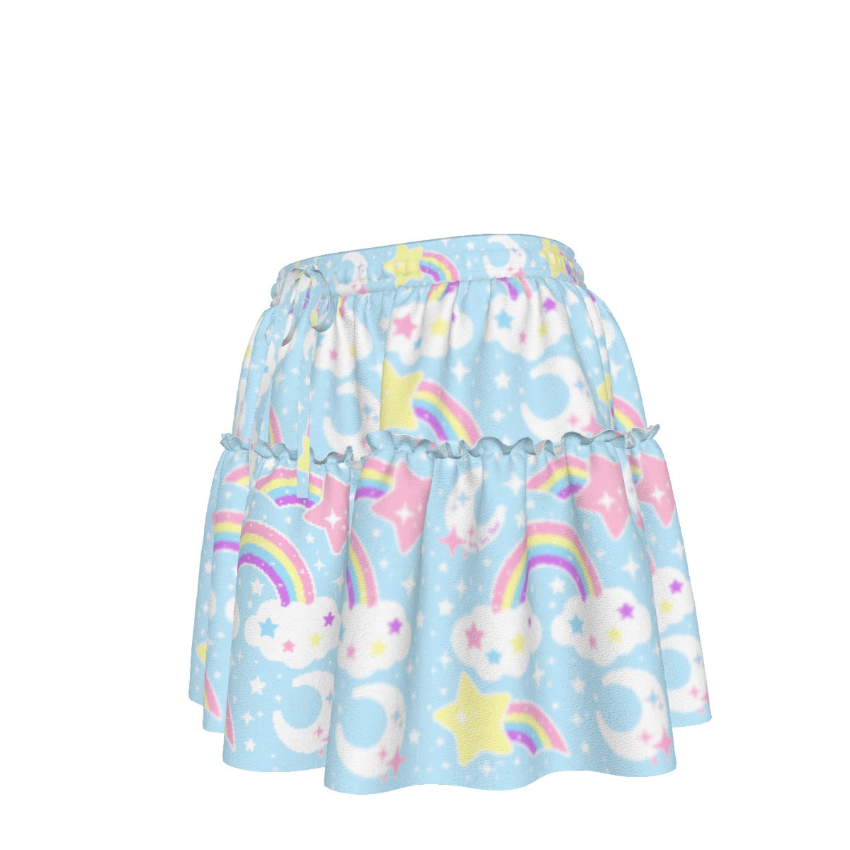 Dreamy Rainbow Blue Waist Tie Ruffle Mini Skirt