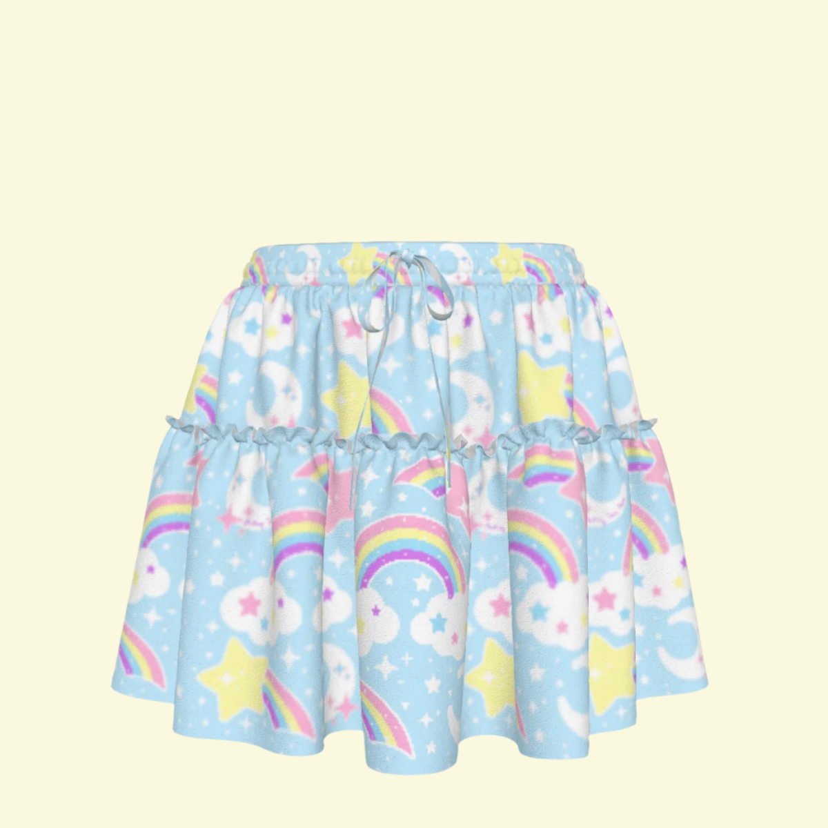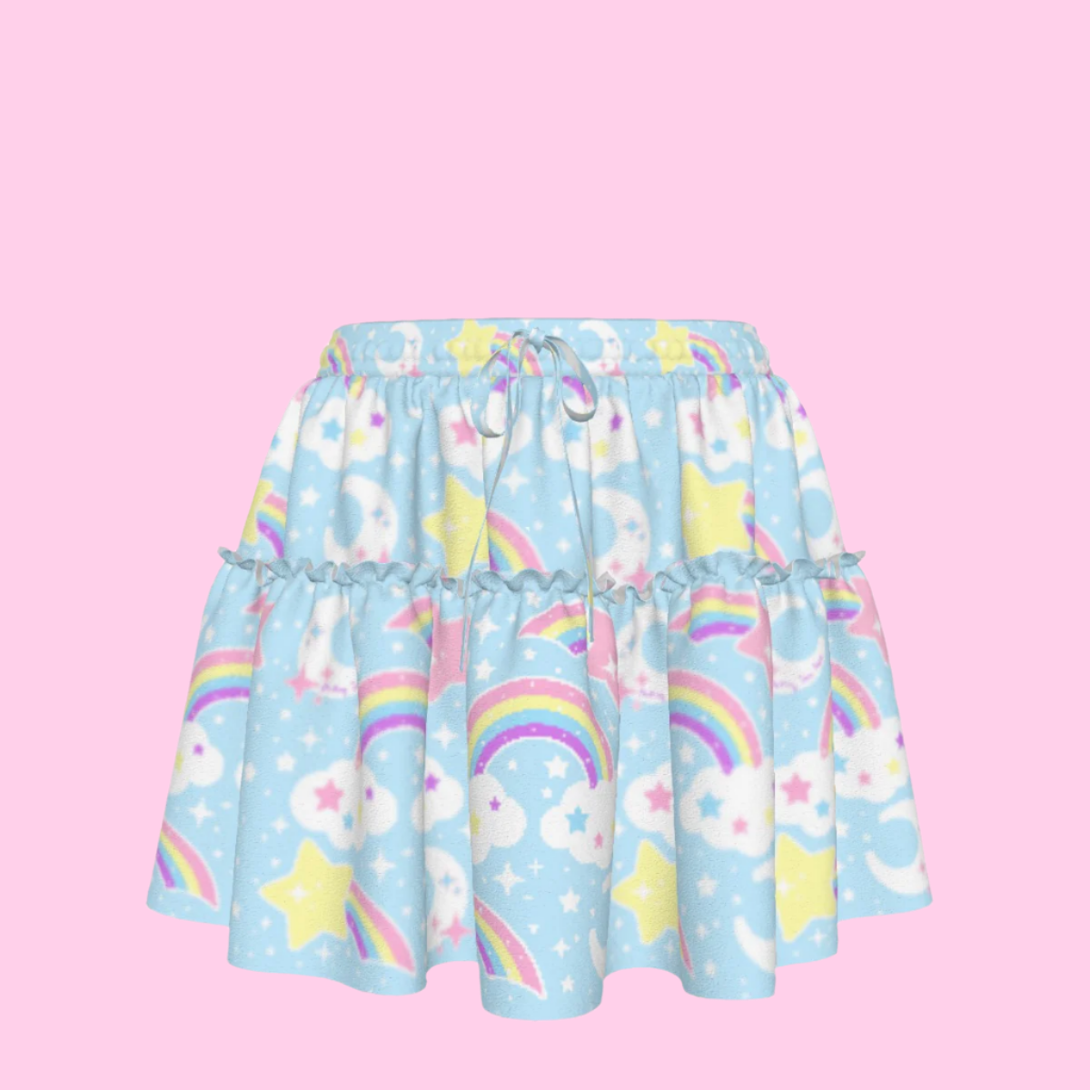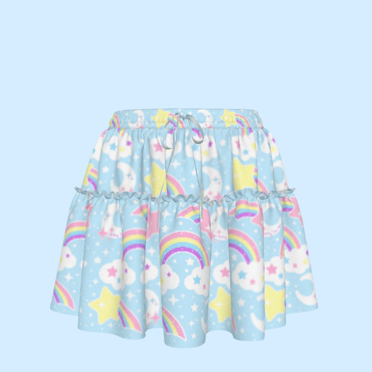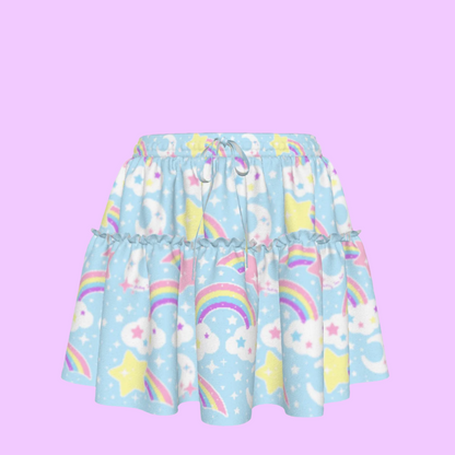 Dreamy Rainbow Blue Waist Tie Ruffle Mini Skirt