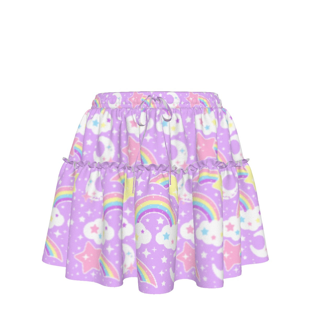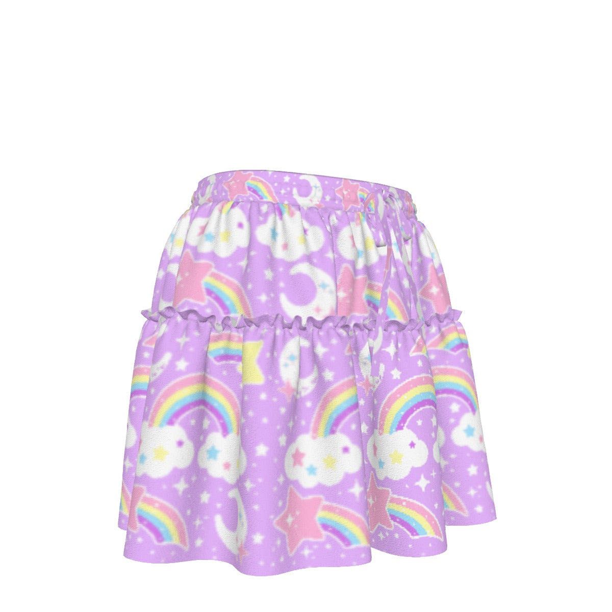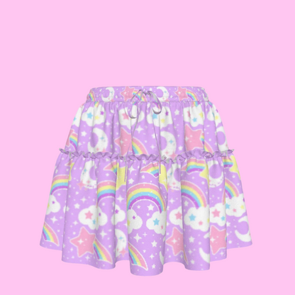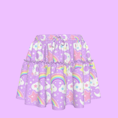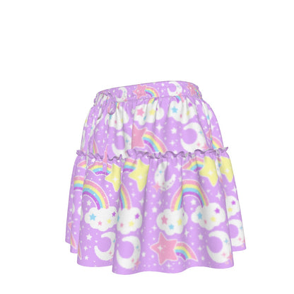 Dreamy Rainbow Purple Waist Tie Ruffle Mini Skirt