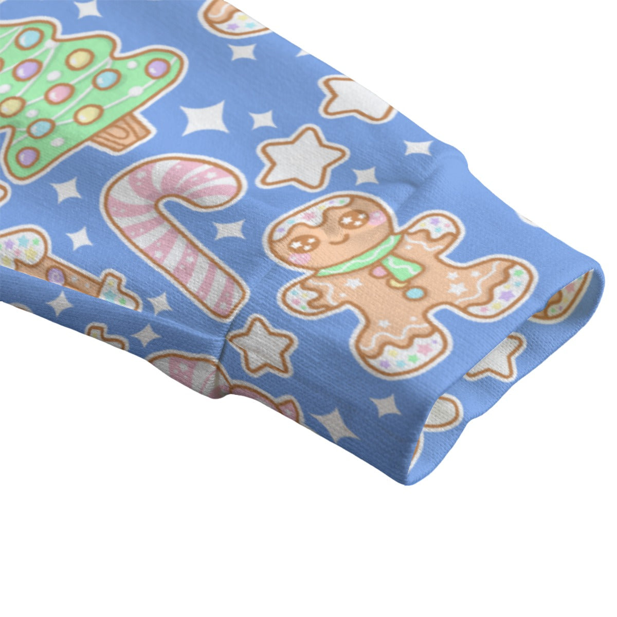 Kawaii Christmas Unisex V-Neck Knitted Fleece Button Up Cardigan With Pockets (Blueberry Candy)