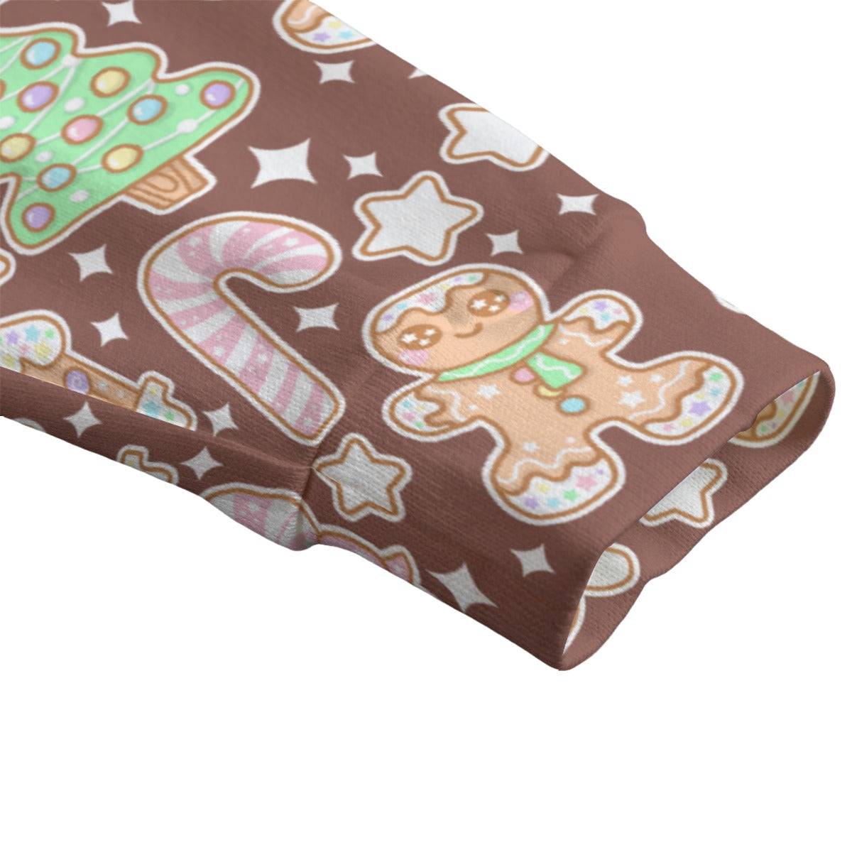 Kawaii Christmas Unisex V-Neck Knitted Fleece Button Up Cardigan With Pockets (Chocolate Cocoa)