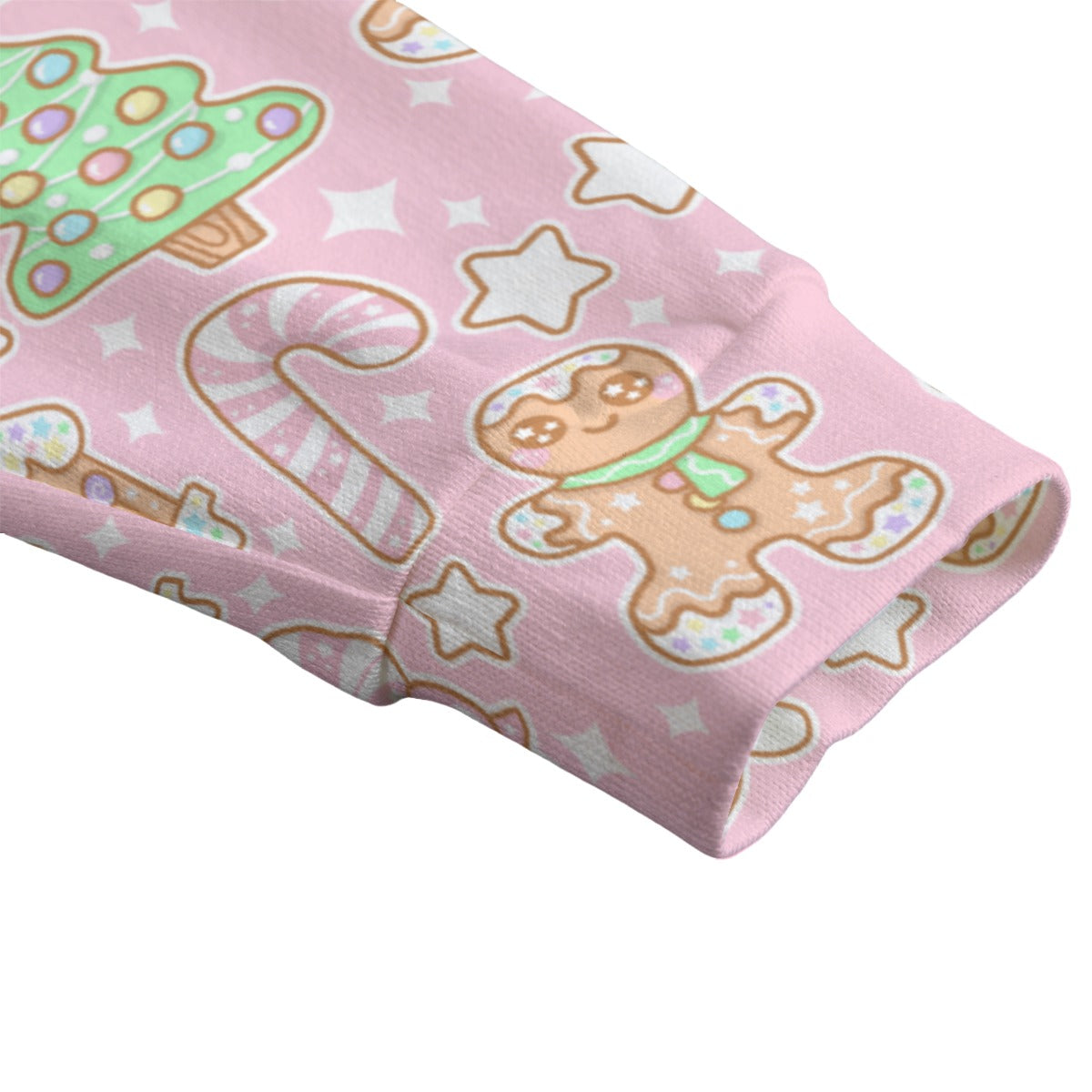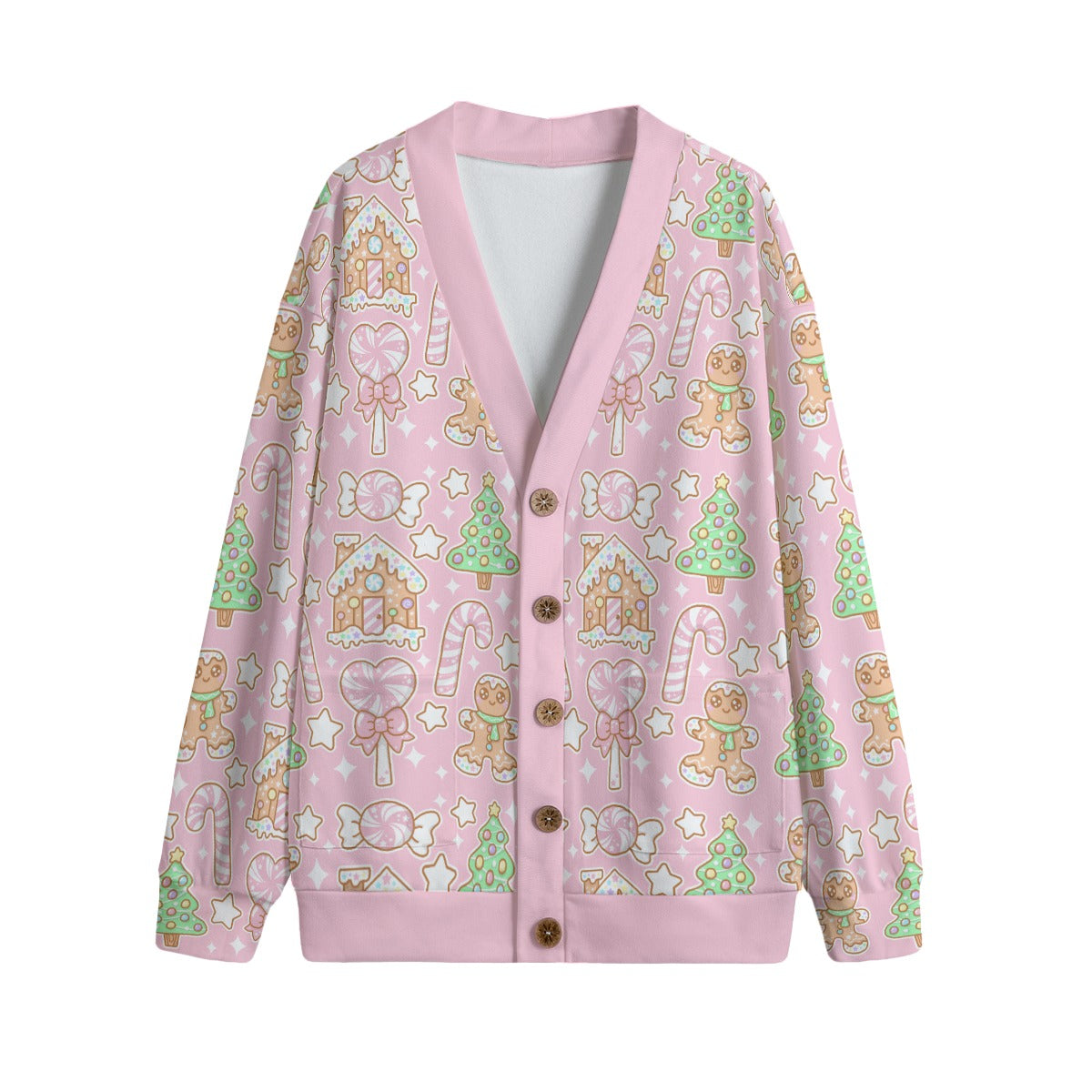Kawaii Christmas Unisex V-Neck Knitted Fleece Button Up Cardigan With Pockets (Strawberry Cream)