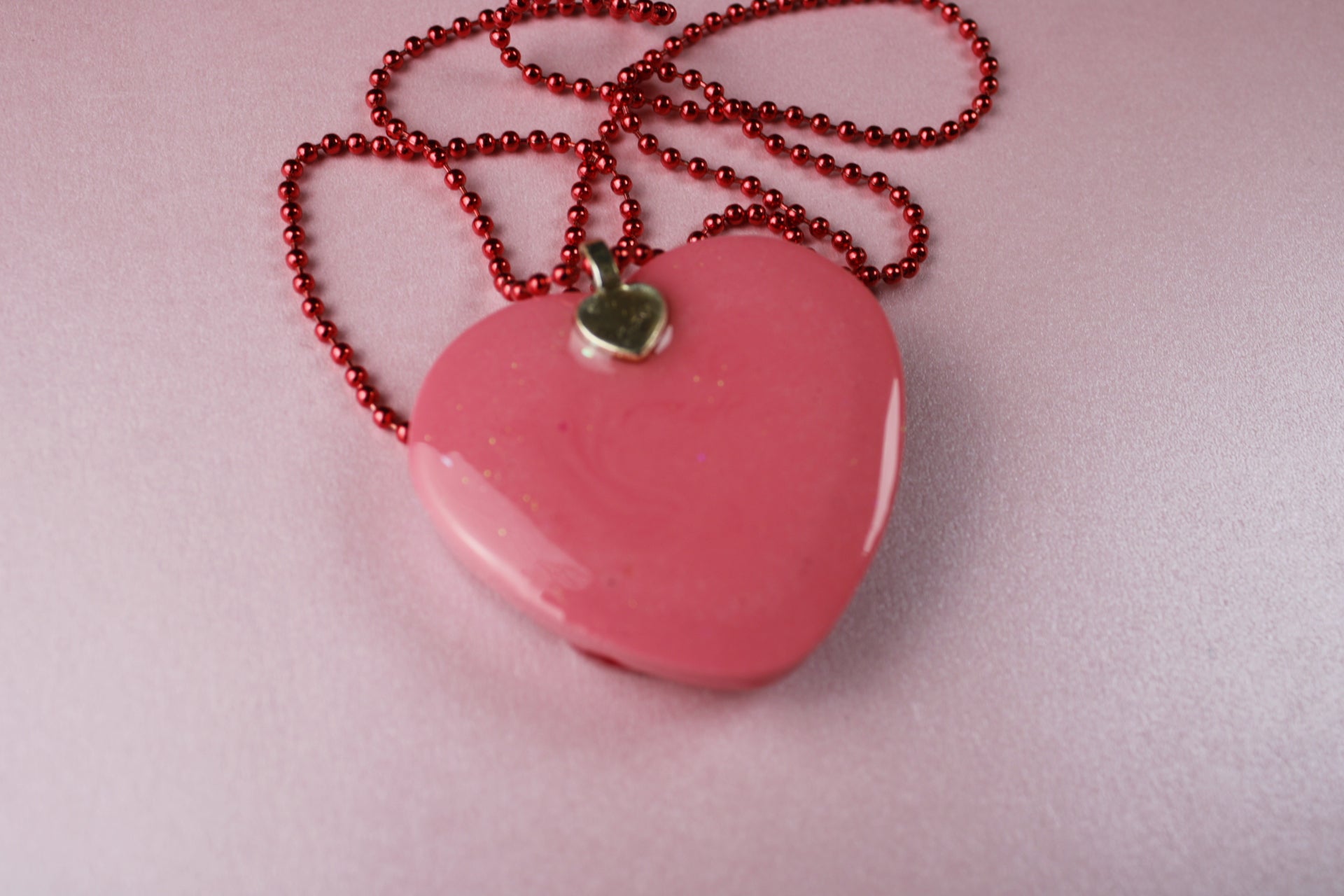 Cute heart shaker necklace. Medium-large sized pendant made with uv resin, glitter and love. Crafted from sturdy, high-quality materials, it’s built to last. Twinkling glitter with every movement, and the bright ball chain adds both durability and style. Perfect for sparkling up any outfit!