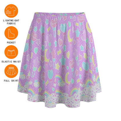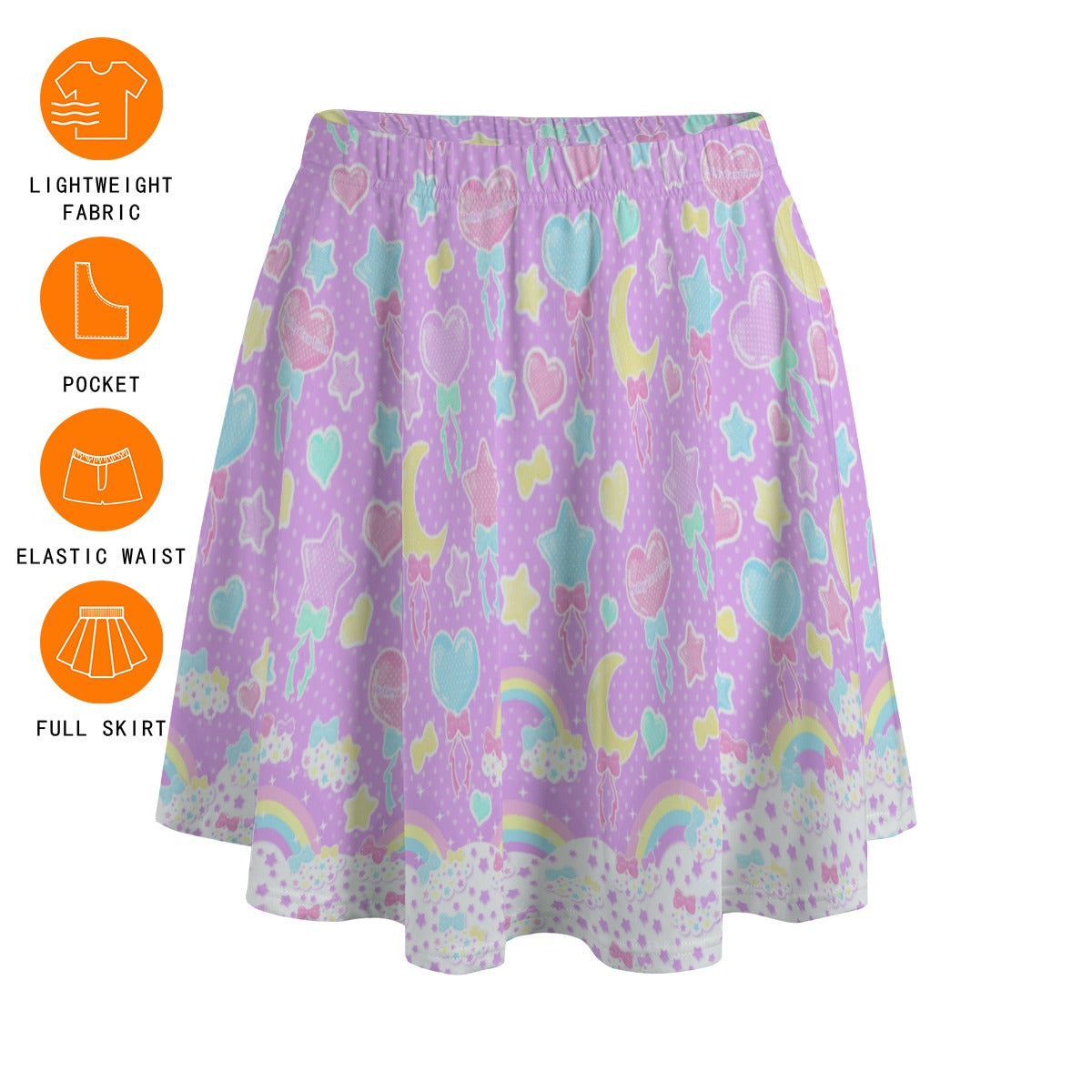 Soft, cute, comfortable and has pockets! This skirt has an elastic waistband for a comfy fit. You can mix and match this skirt with any top. A must have skirt for any cute enthusiast!