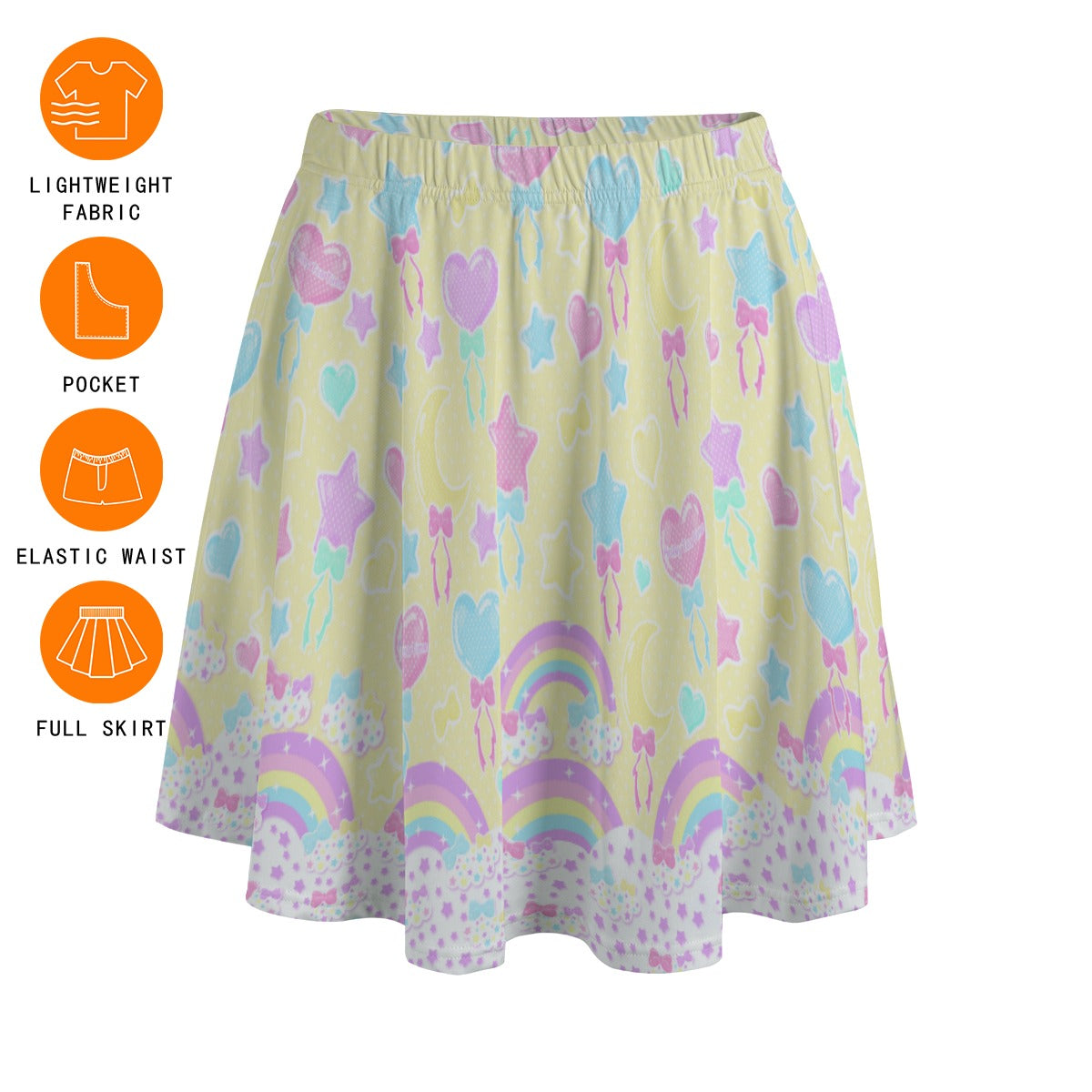 Soft, cute, comfortable and has pockets! This skirt has an elastic waistband for a comfy fit. You can mix and match this skirt with any top. A must have skirt for any cute enthusiast!