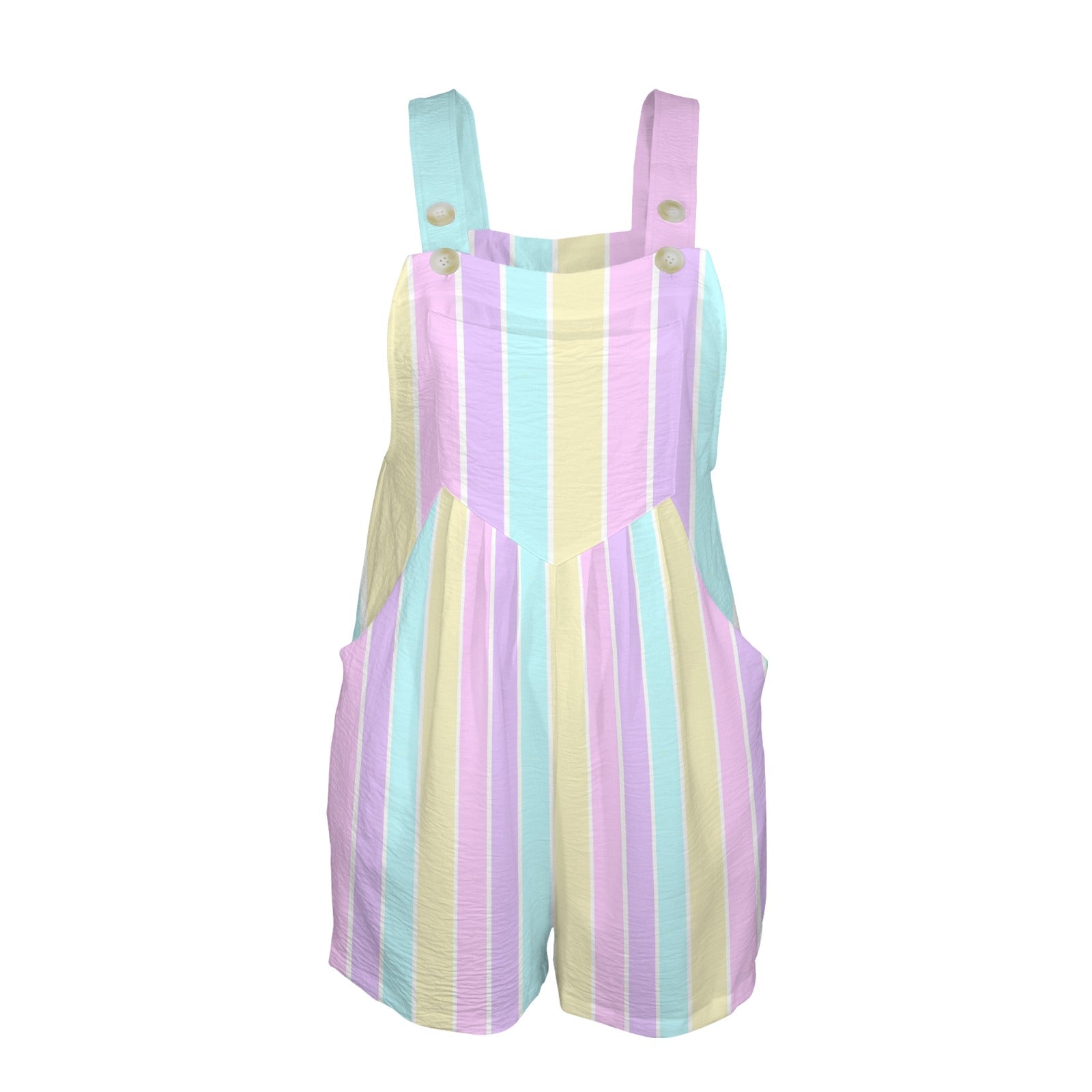 Pastel Stripes Adjustable Strap Romper Overall Shorts With Pockets