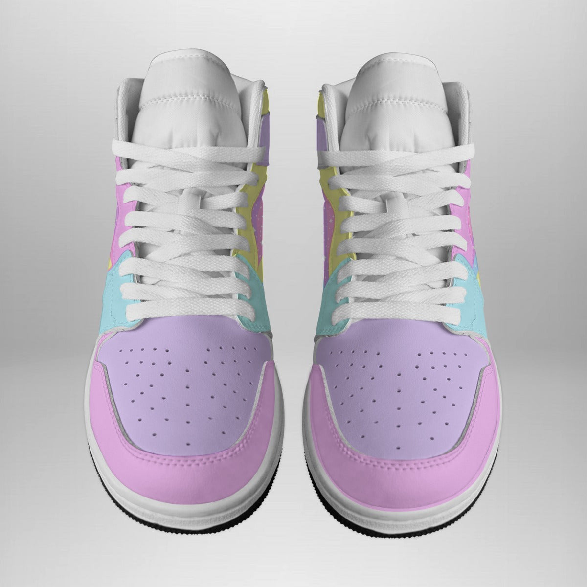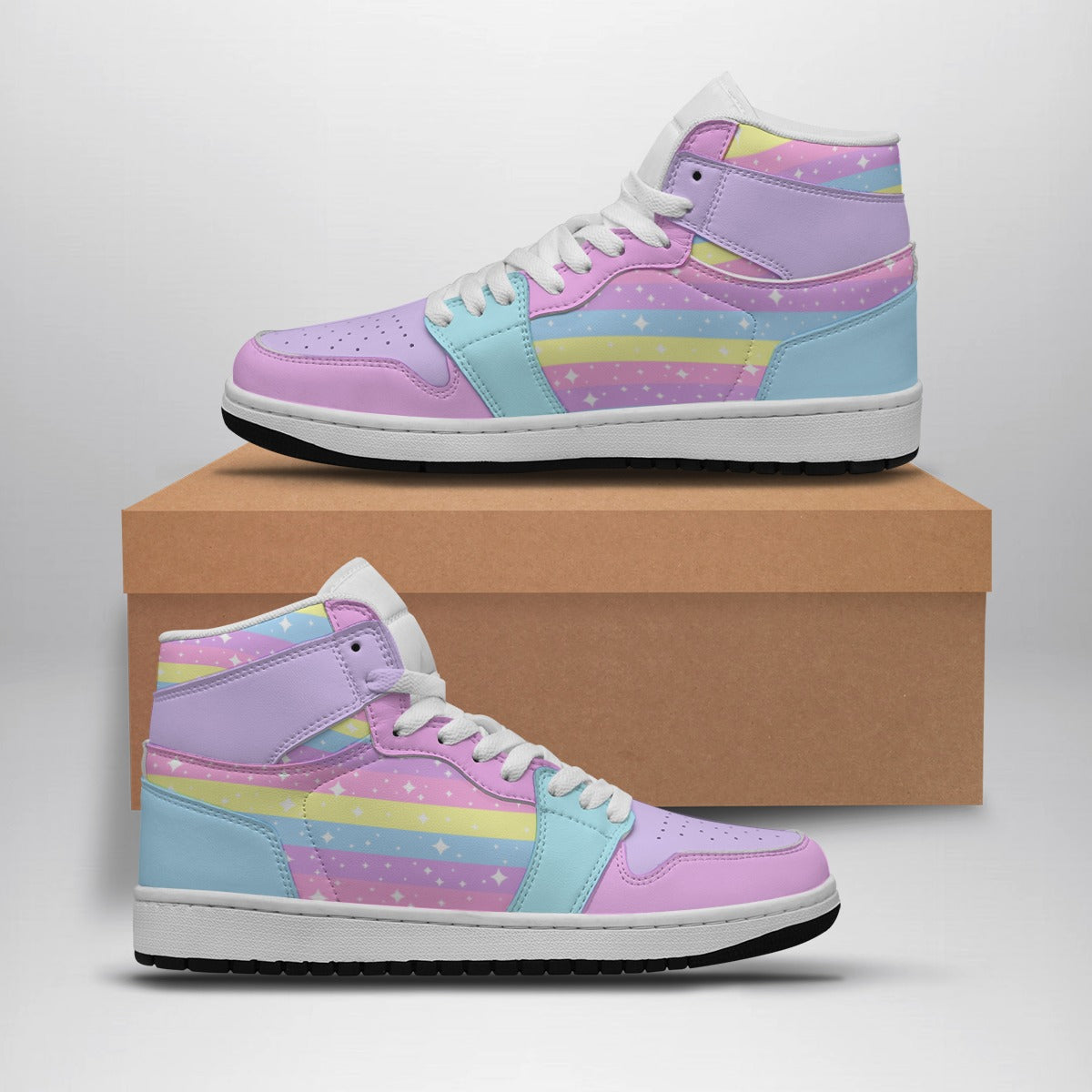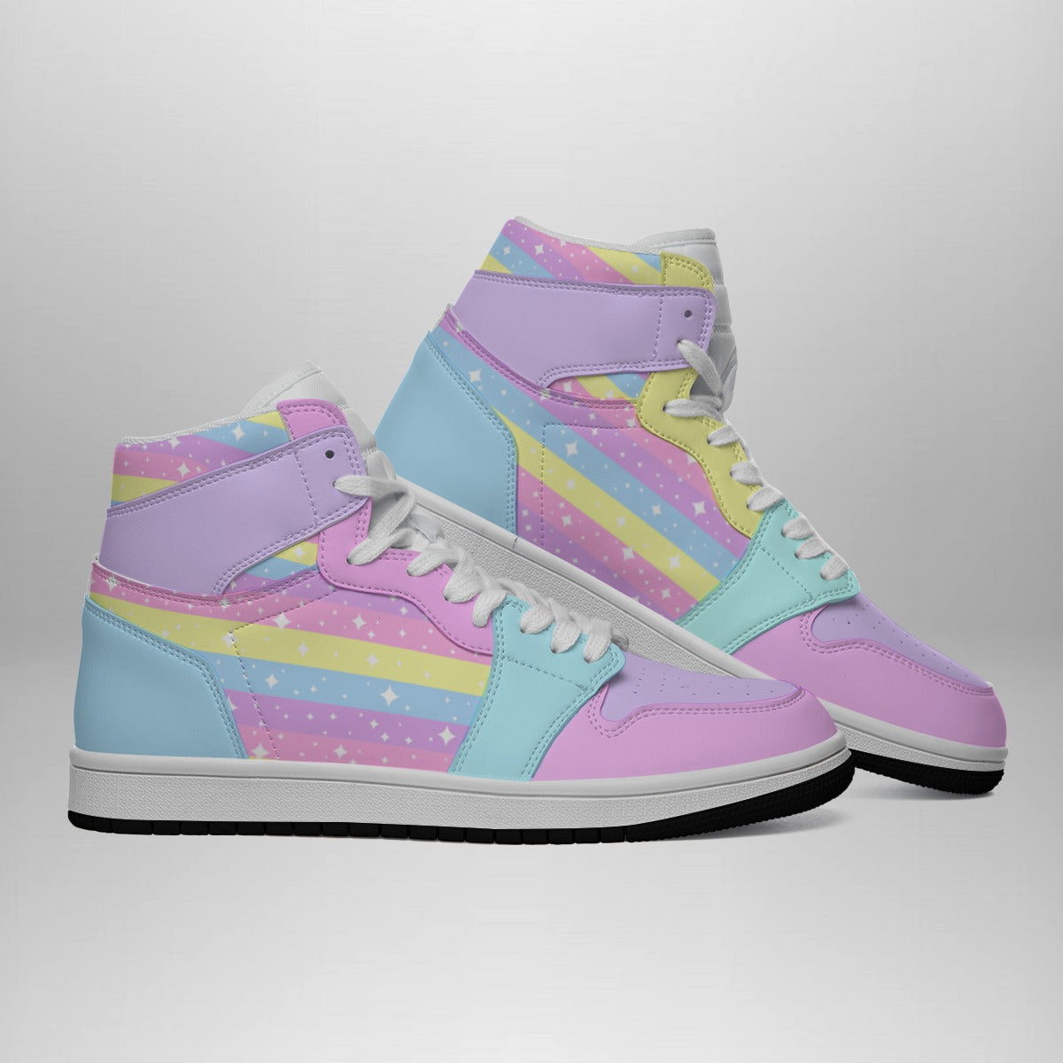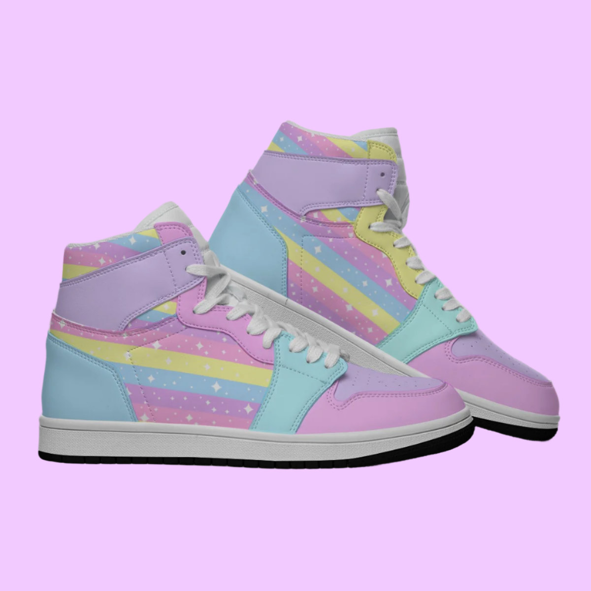 These high top sneakers combine comfort and trendy kawaii style, perfect for everyday wear throughout the year. Crafted from soft, vegan-friendly faux leather, they offer breathability and slip resistance. Lace up these versatile shoes and enjoy reliable support wherever you go. Perfect for fairy kei fashion or yume kawaii style. Designed for your cute pastel outfits.