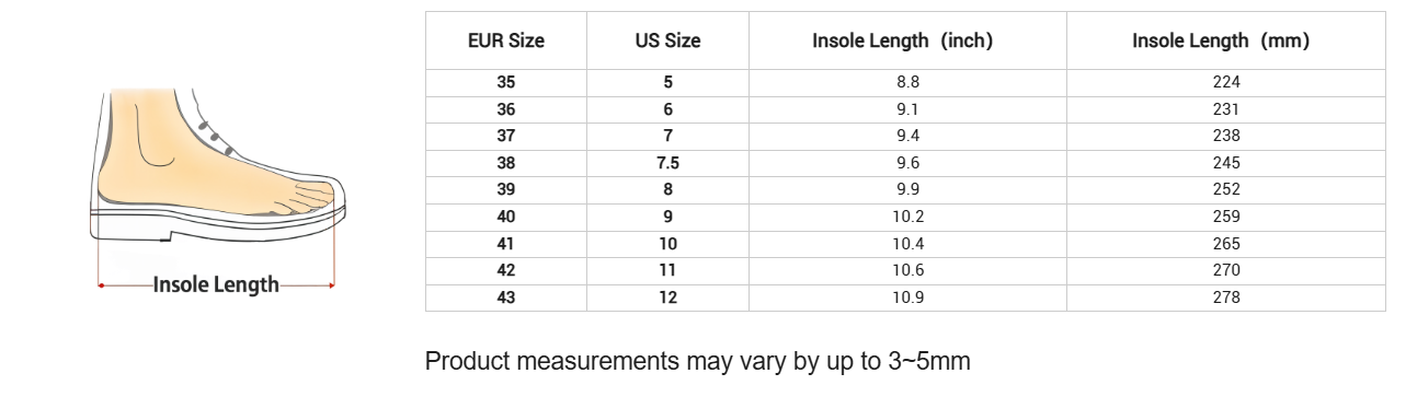 EUR Size US Size Insole Lengthinch Insole Lengthmm
