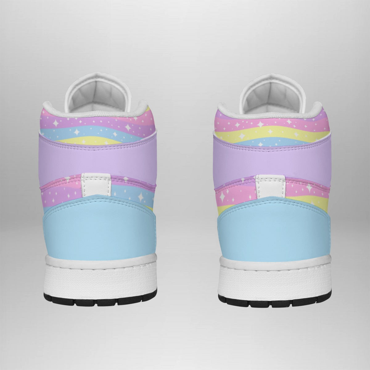 Rainbow Ribbon Women's Faux Leather High Top Sneakers (Pastel Dream)