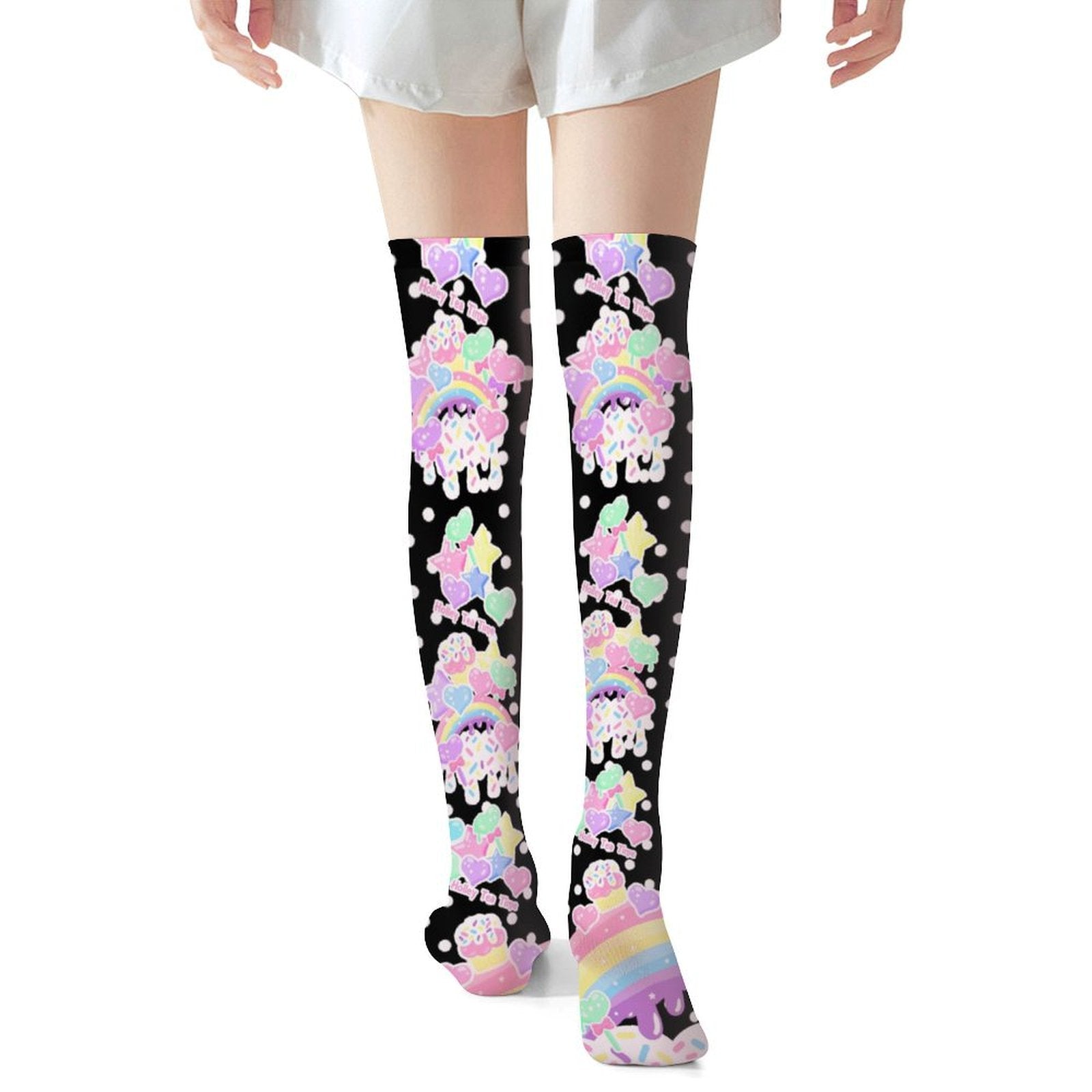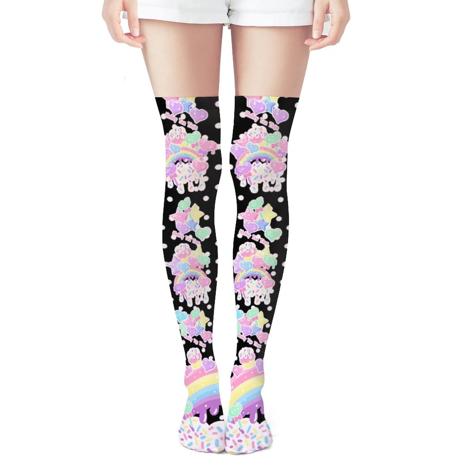 Rainbow Sweets Over Knee Stocking Socks (Black)