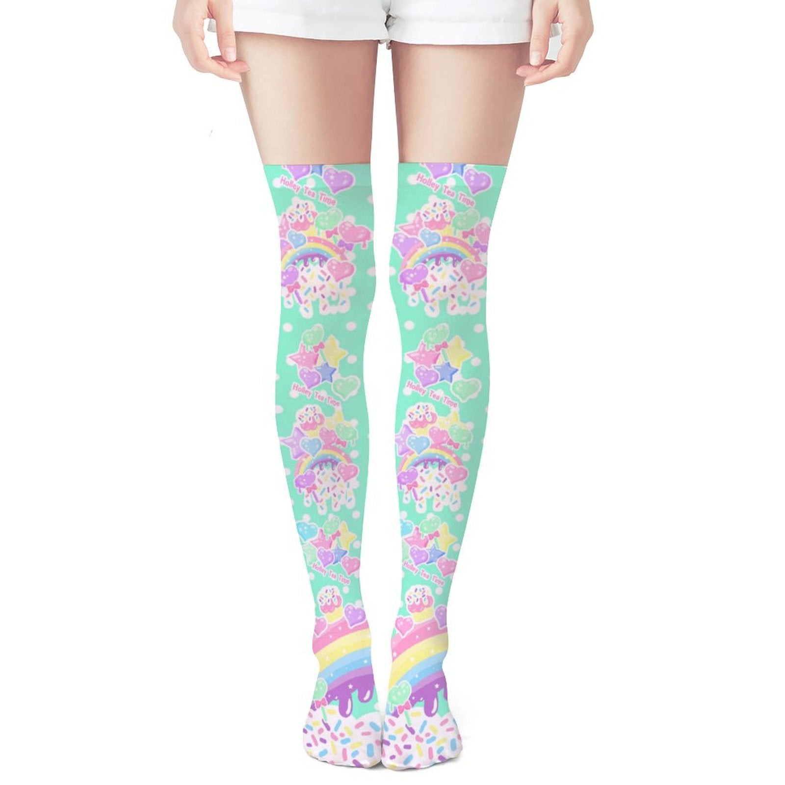 Rainbow Sweets Over Knee Stocking Socks (Mint)