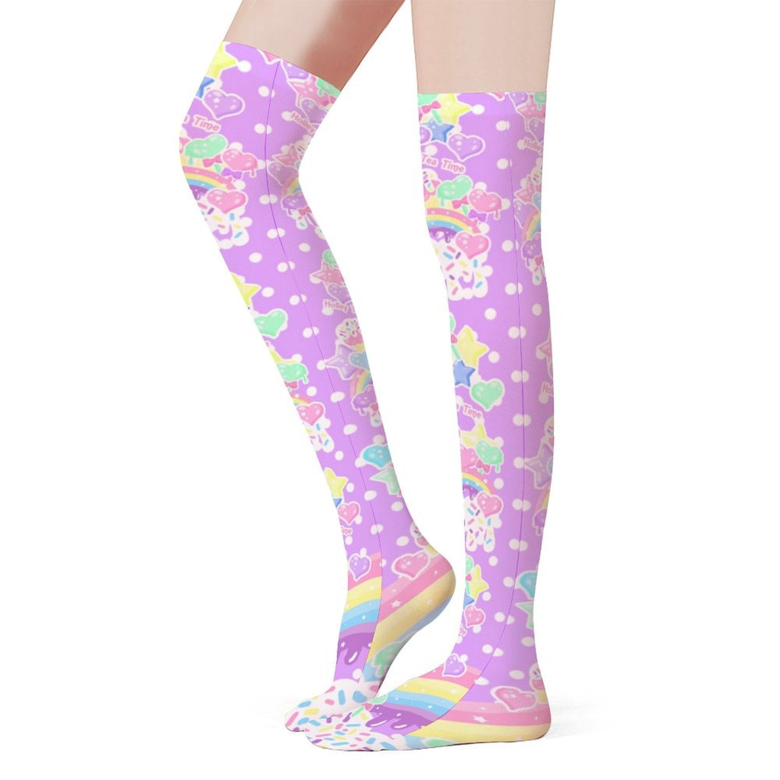 Rainbow Sweets Over Knee Stocking Socks (Purple)