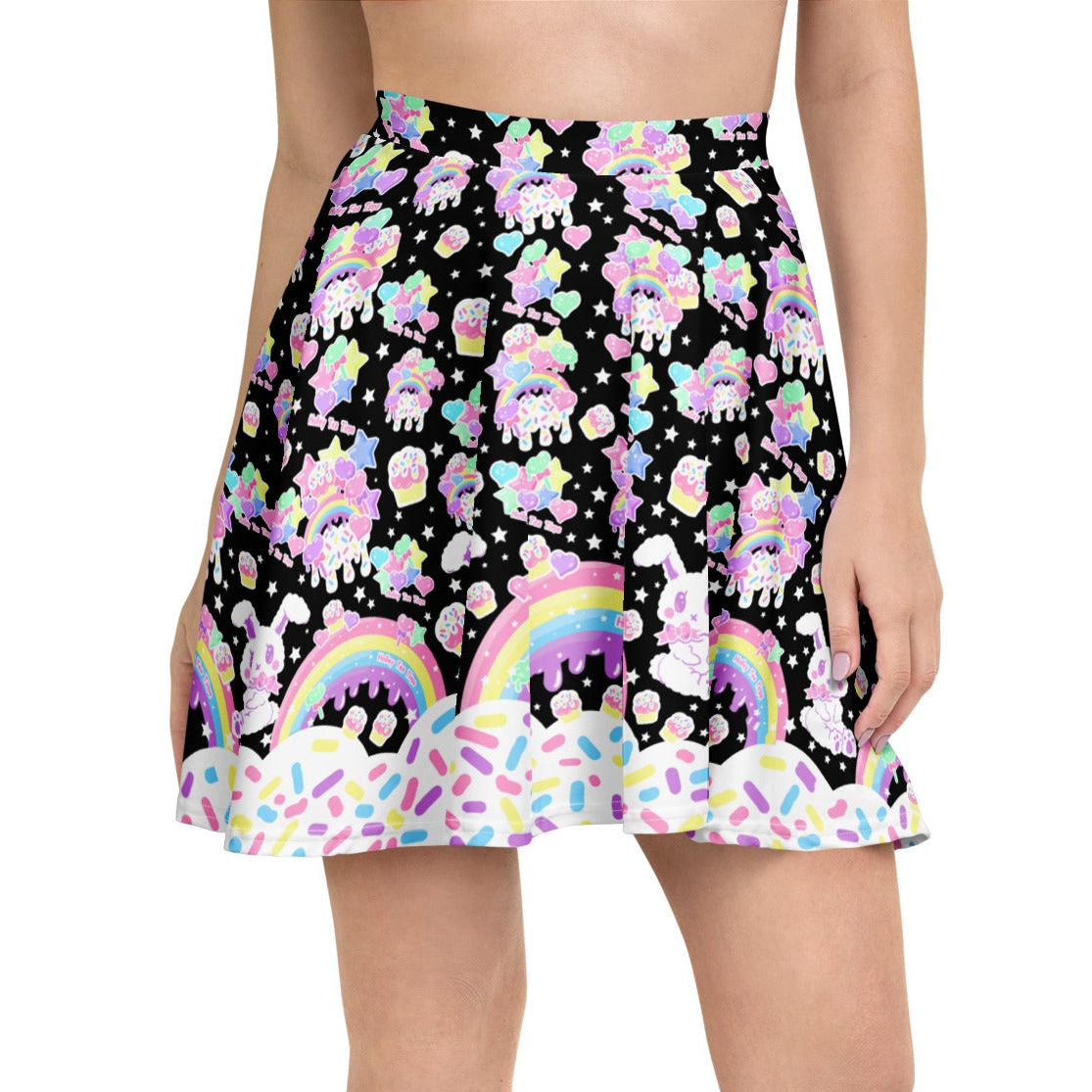 Rainbow Sweets Skater Skirt (Black)