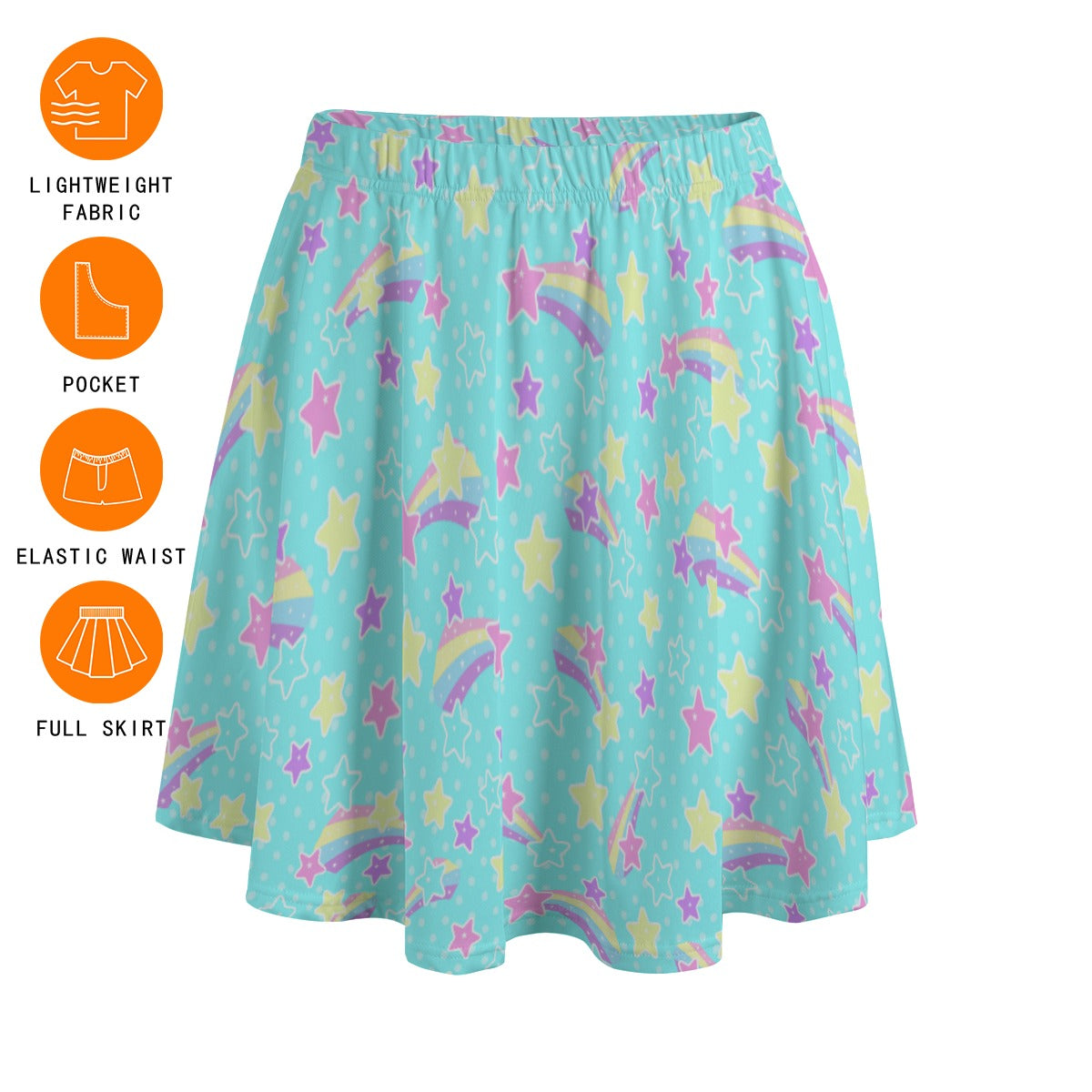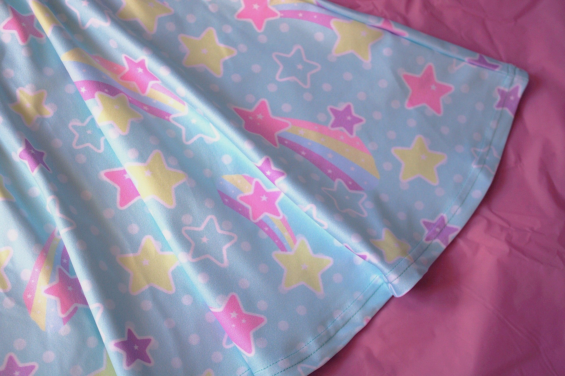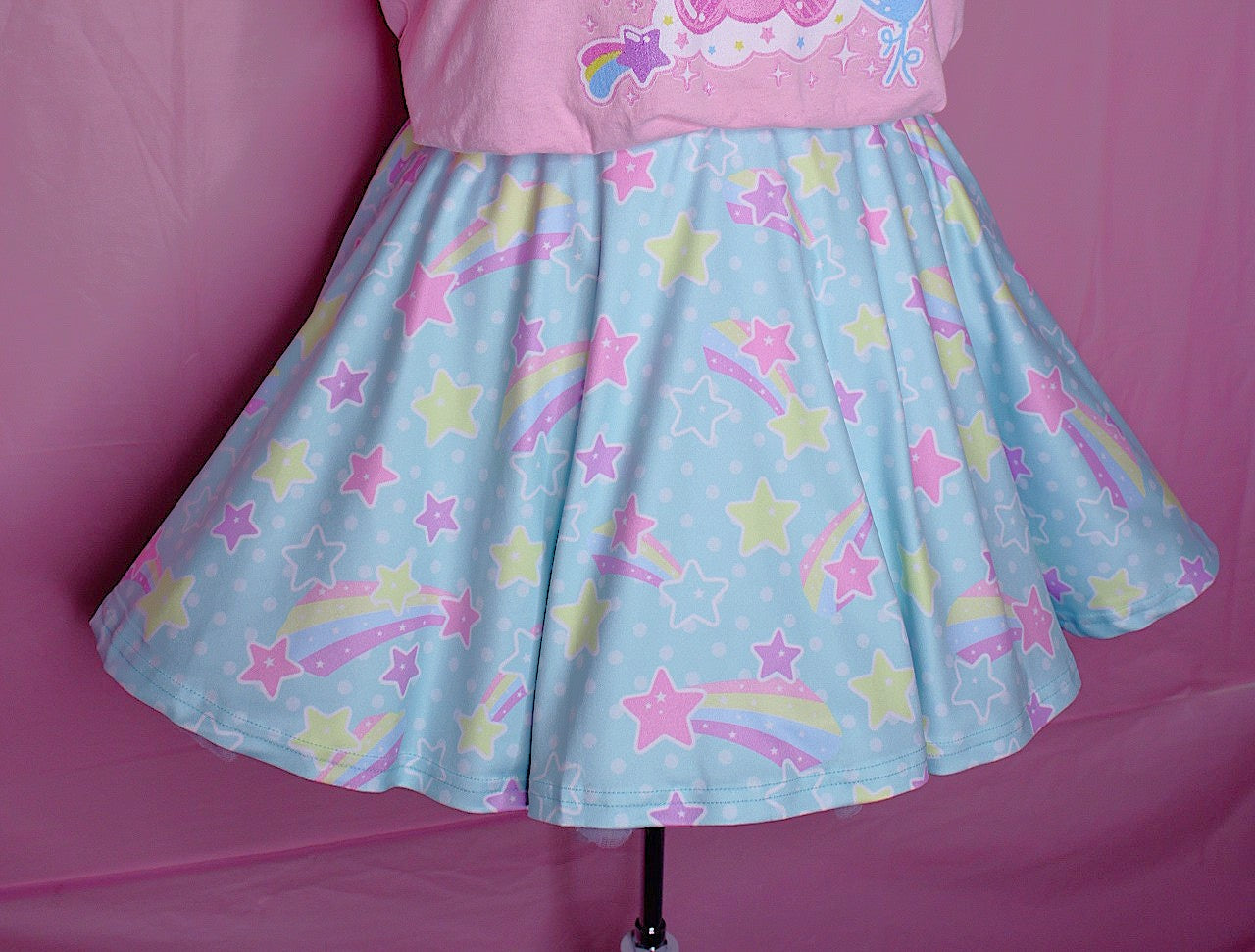 Soft, cute, comfortable and has pockets! This skirt has an elastic waistband for a comfy fit. You can mix and match this skirt with any top. A must have skirt for any cute enthusiast!