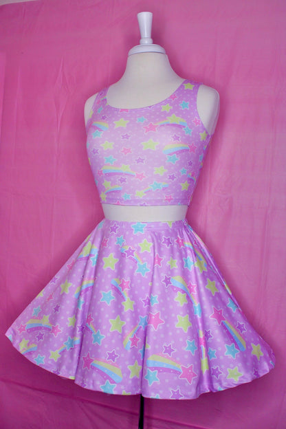 Soft, cute, comfortable and has pockets! This skirt has an elastic waistband for a comfy fit. You can mix and match this skirt with any top. A must have skirt for any cute enthusiast!