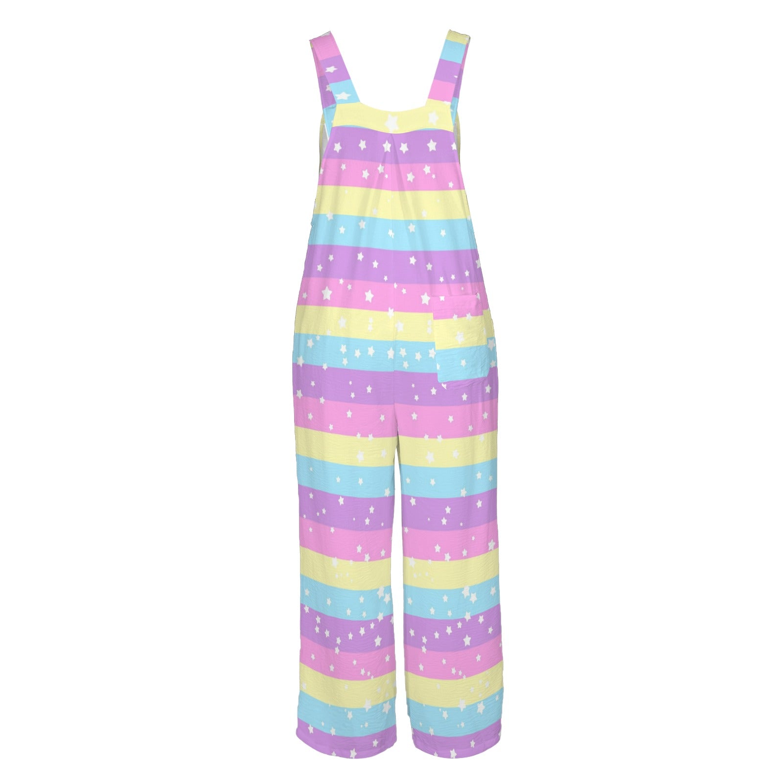 Starry Party Rainbow Adjustable Strap Wide Leg Jumpsuit Overalls With Pockets