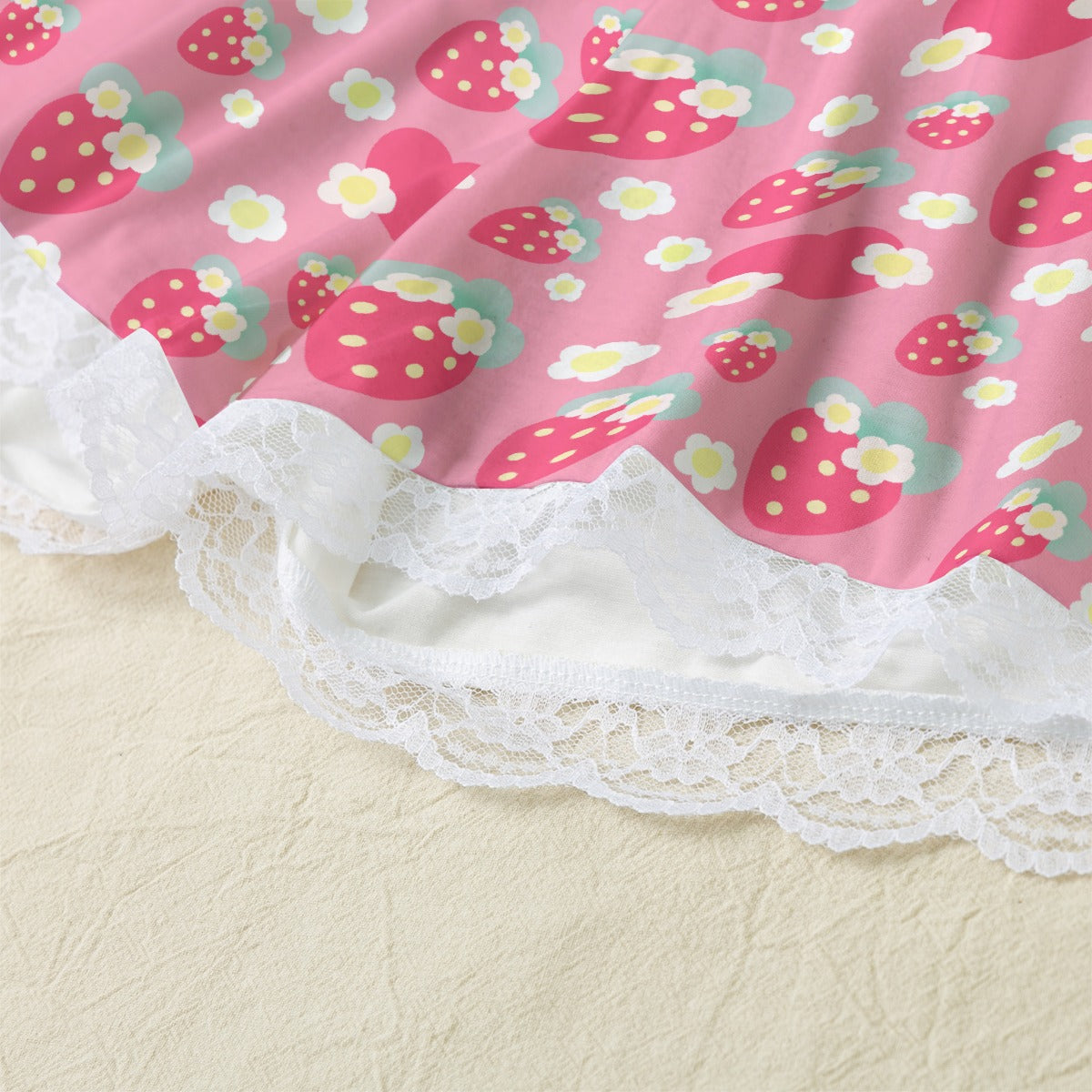 Strawberry Cutie Women's Cami & Shorts Lounge Wear Pajama Set With Lace Trim (Cottagecore Fruity Berry Pinky Red)