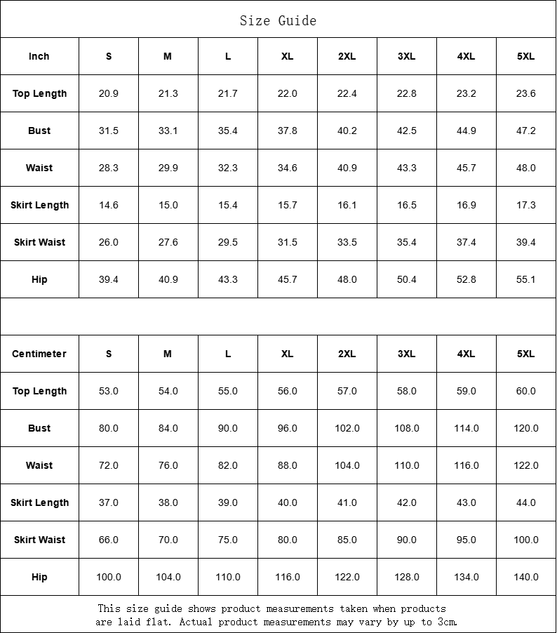 | Skirt Waist | 66.0 | 70.0 | 75.0 | 80.0 | 85.0 | 90.0 | 95.0 | 100.0 |