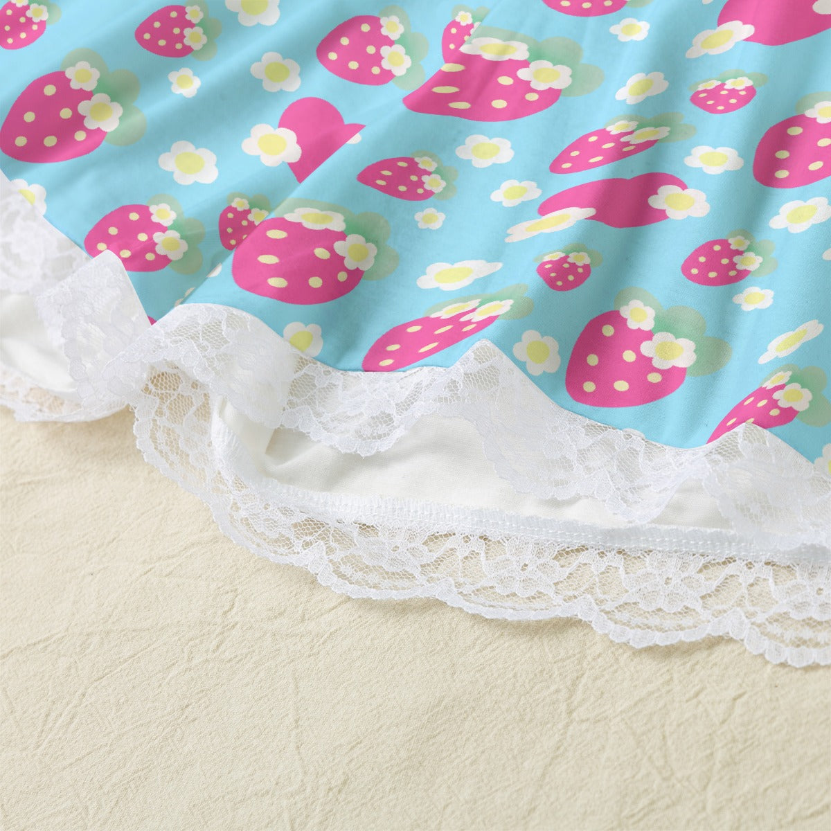 Strawberry Cutie Women's Cami & Shorts Lounge Wear Pajama Set With Lace Trim (Fruity Berry Blue)