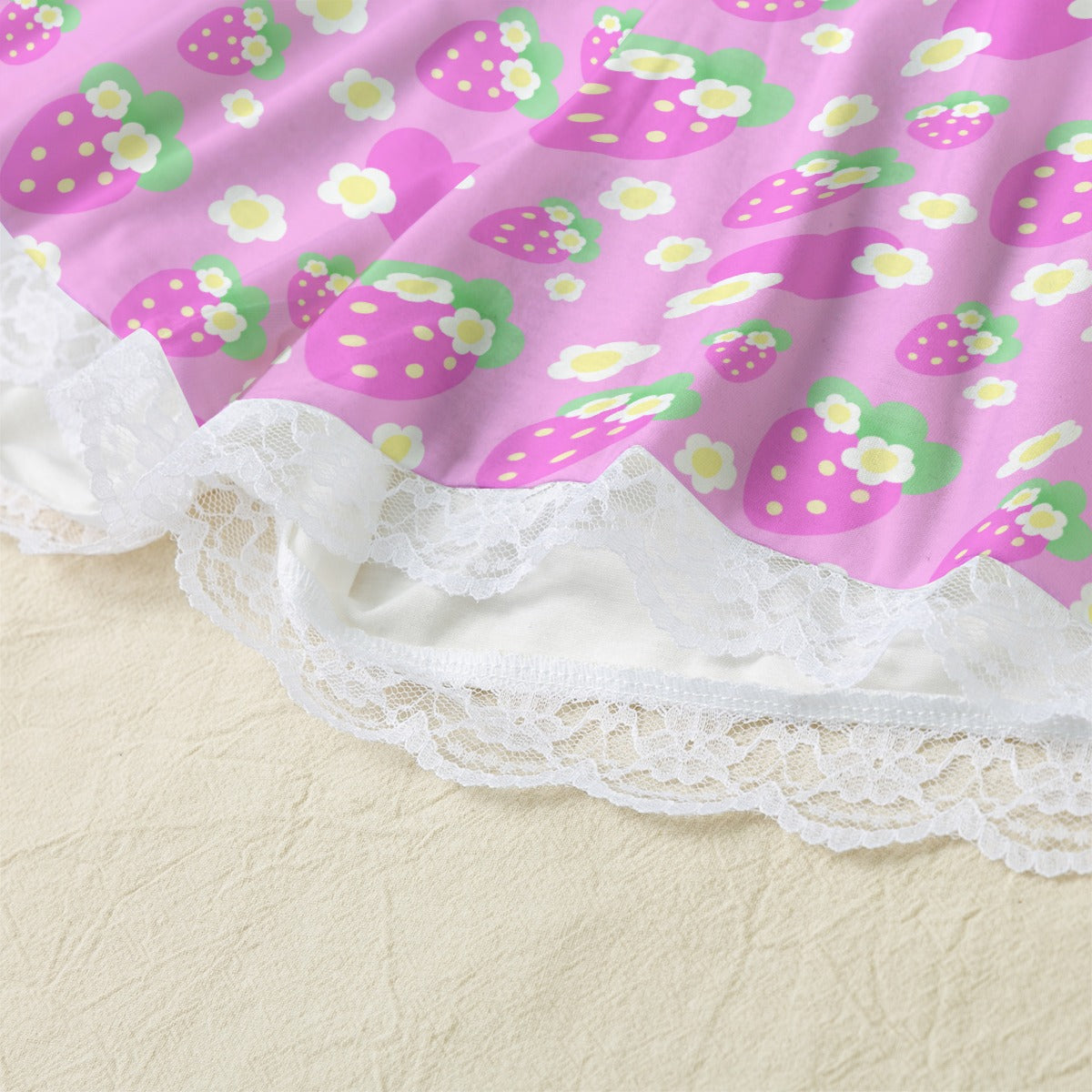 - Lace edge, two-piece set with adjustable elastic shoulder strap and elastic waist waistband in the shorts.