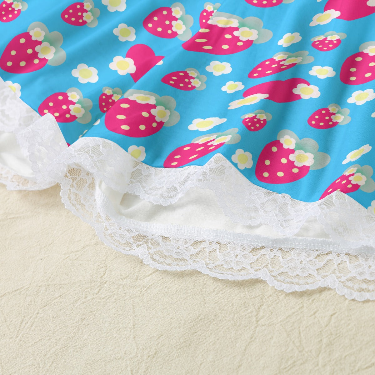 Strawberry Cutie Women's Cami & Shorts Lounge Wear Pajama Set With Lace Trim (Soda Pop Fruity Berry Blue)