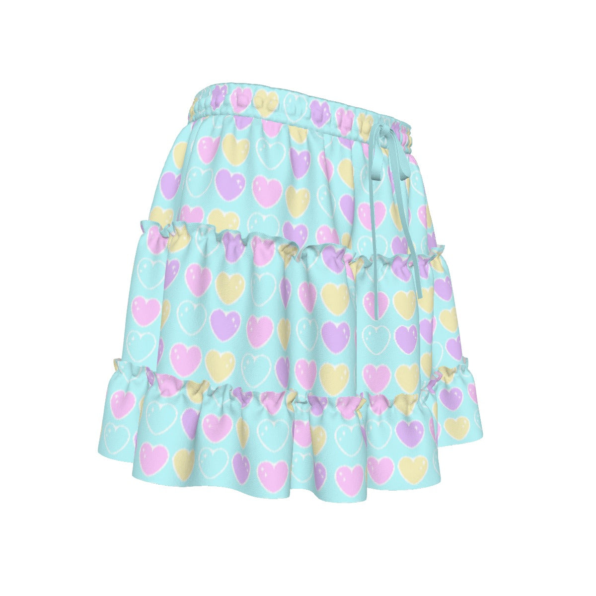 Sweet Love Hearts Blue Waist Tie Tiered Ruffle Mini Skirt