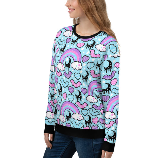 Rainbow Spooky Bats Blue Unisex Sweatshirt