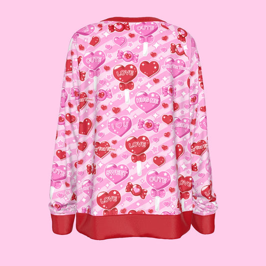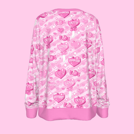 Candy Love Hearts (Pink Cutie) Women's Round Neck Raglan Sleeve Sweatshirt