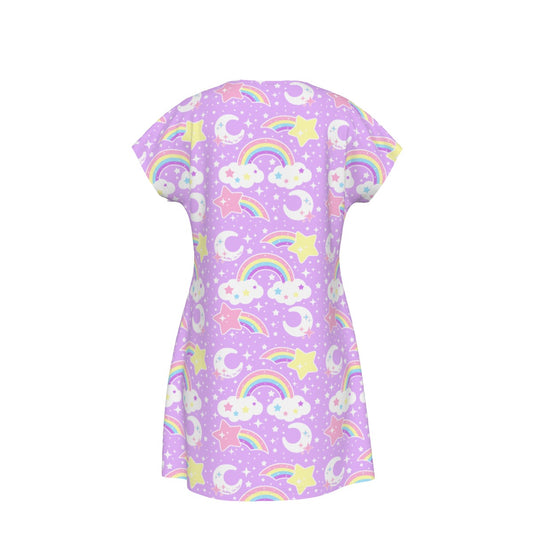 Dreamy Rainbow Women's Short Sleeve Dress (Purple)