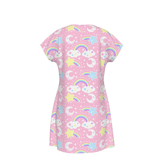 Dreamy Rainbow Women's Short Sleeve Dress (Pink)