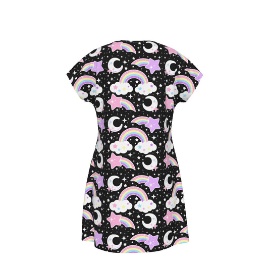 Dreamy Rainbow Women's Short Sleeve Dress (Black)
