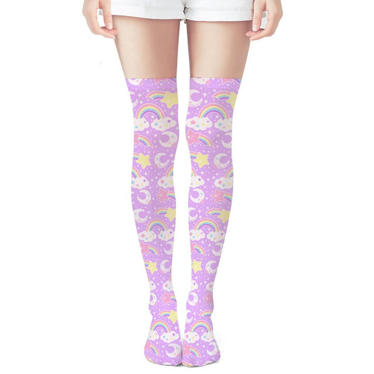 Dreamy Rainbow Over Knee Stocking Socks (Purple)