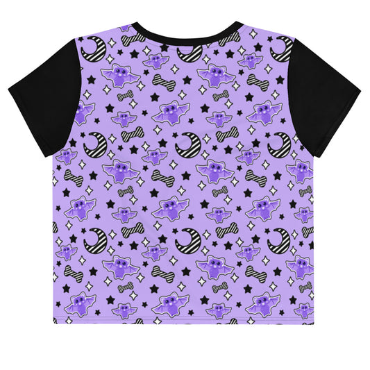 Magical Kawaii Spooky Bats Purple Crop Tee