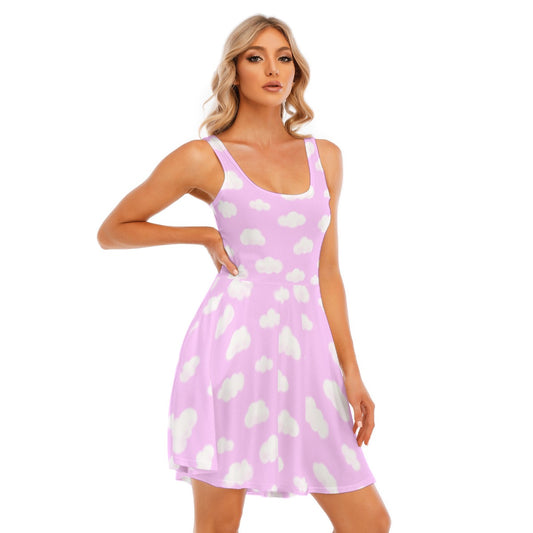Dreamy Clouds Women's Skater Dress With Pockets (Taffy Pink)