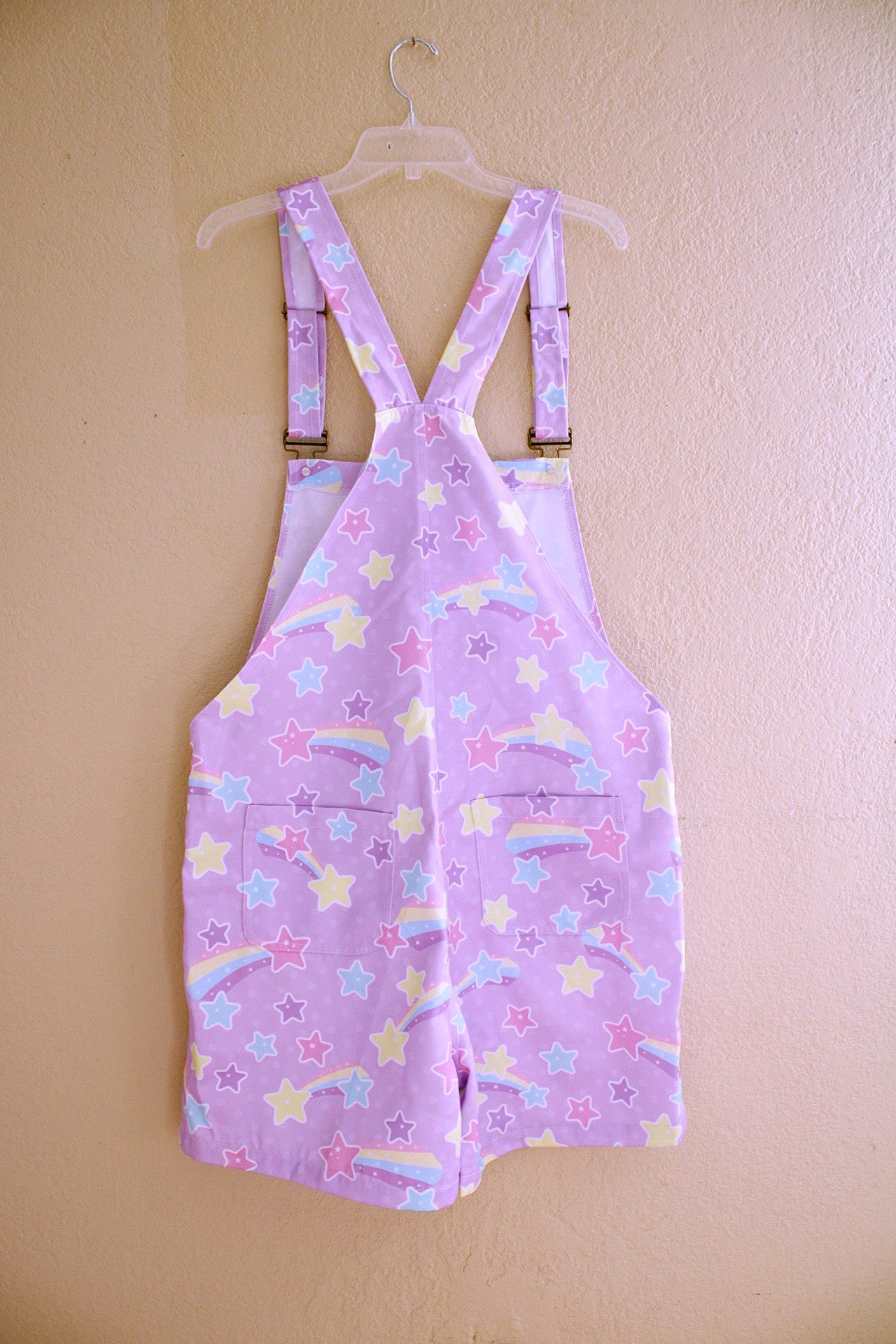 Starry Party Purple Unisex Shorts Overalls With Adjustable Straps And Pockets