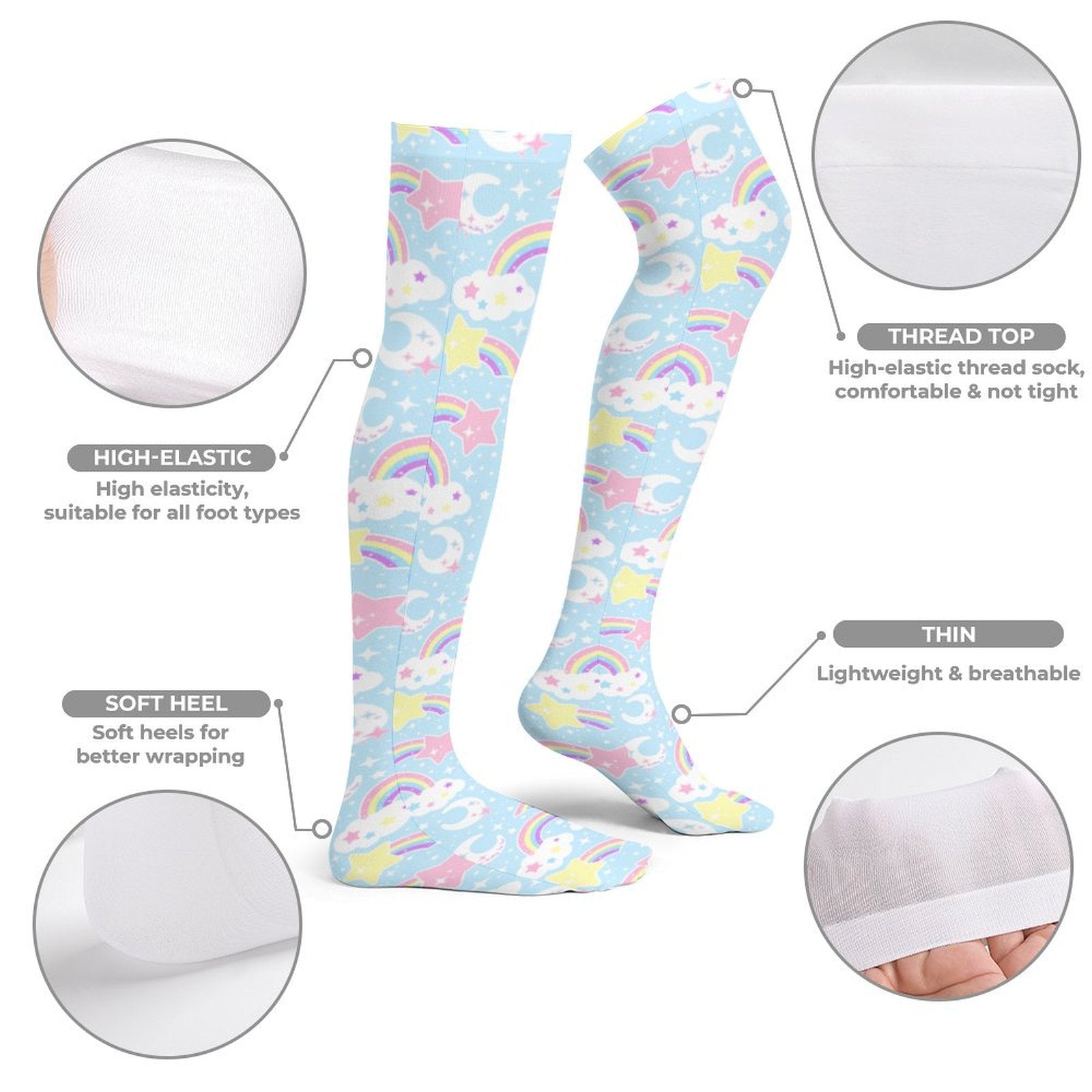 Dreamy Rainbow Over Knee Stocking Socks (Blue)