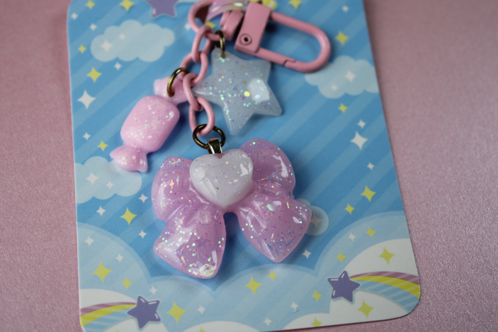 Cute trinket keychain that is as cute as it is durable. Made from high quality eco friendly uv resin. Sparkly and cute put this keychain on your bag, purse or backpack. The perfect accessory to add for a pop of color and to be whimsical.